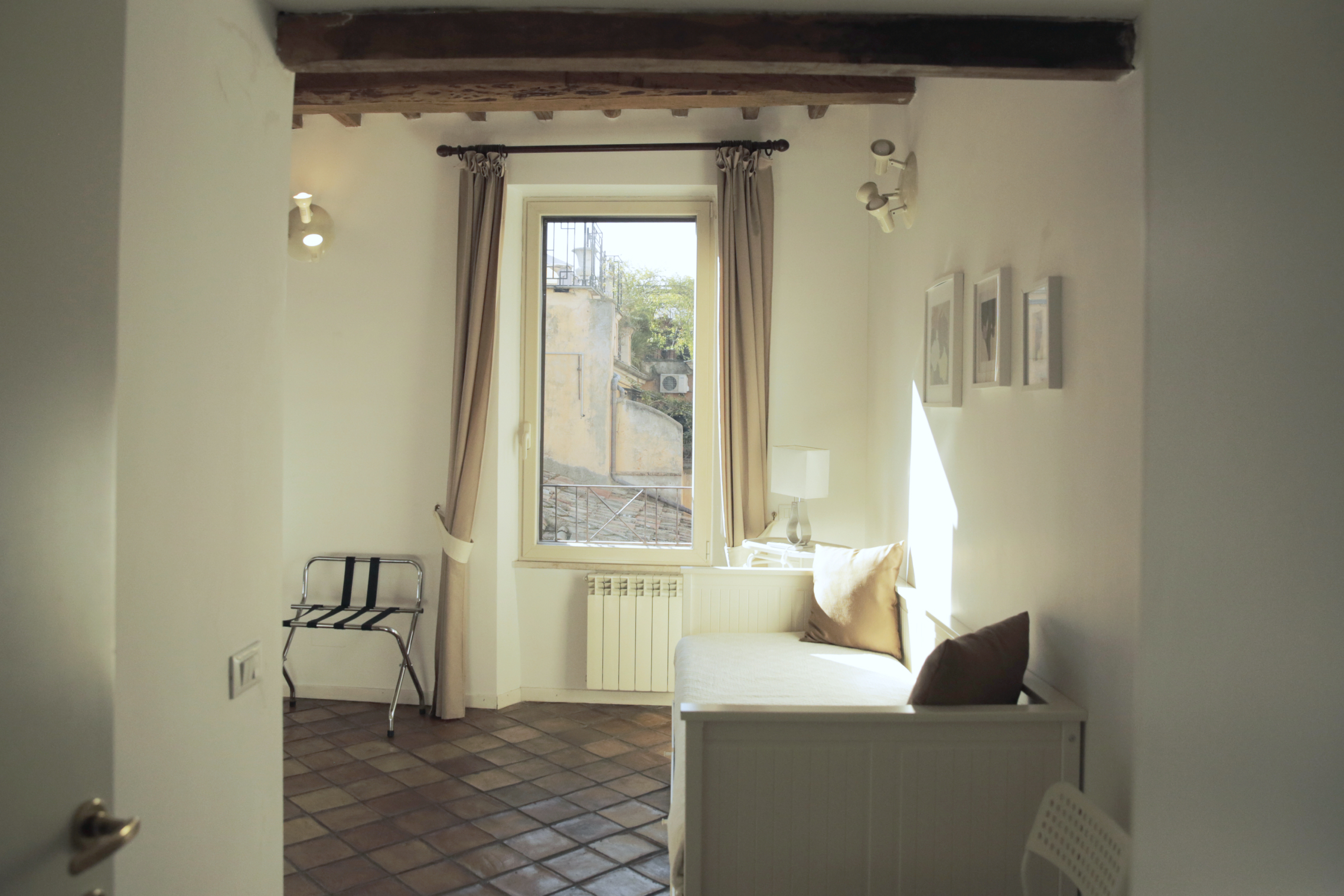 It has a large private OUTSIDE TERRACE with views of church domes and rooftops of the Ancient Rome.
